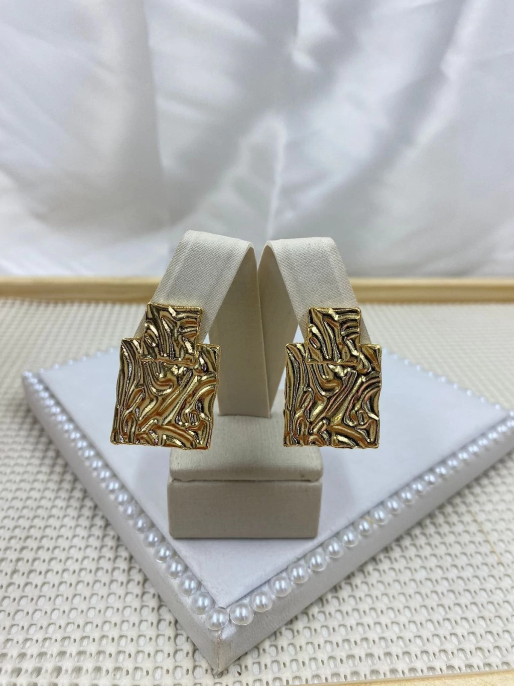 Confira na Mari Bijuterias esse lindo Brinco Folheado com textura trabalhada na cor Dourada: