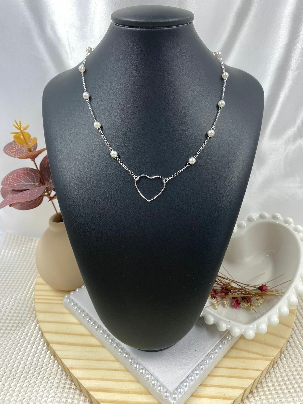 Choker Folheada na cor prata com pingente Coração