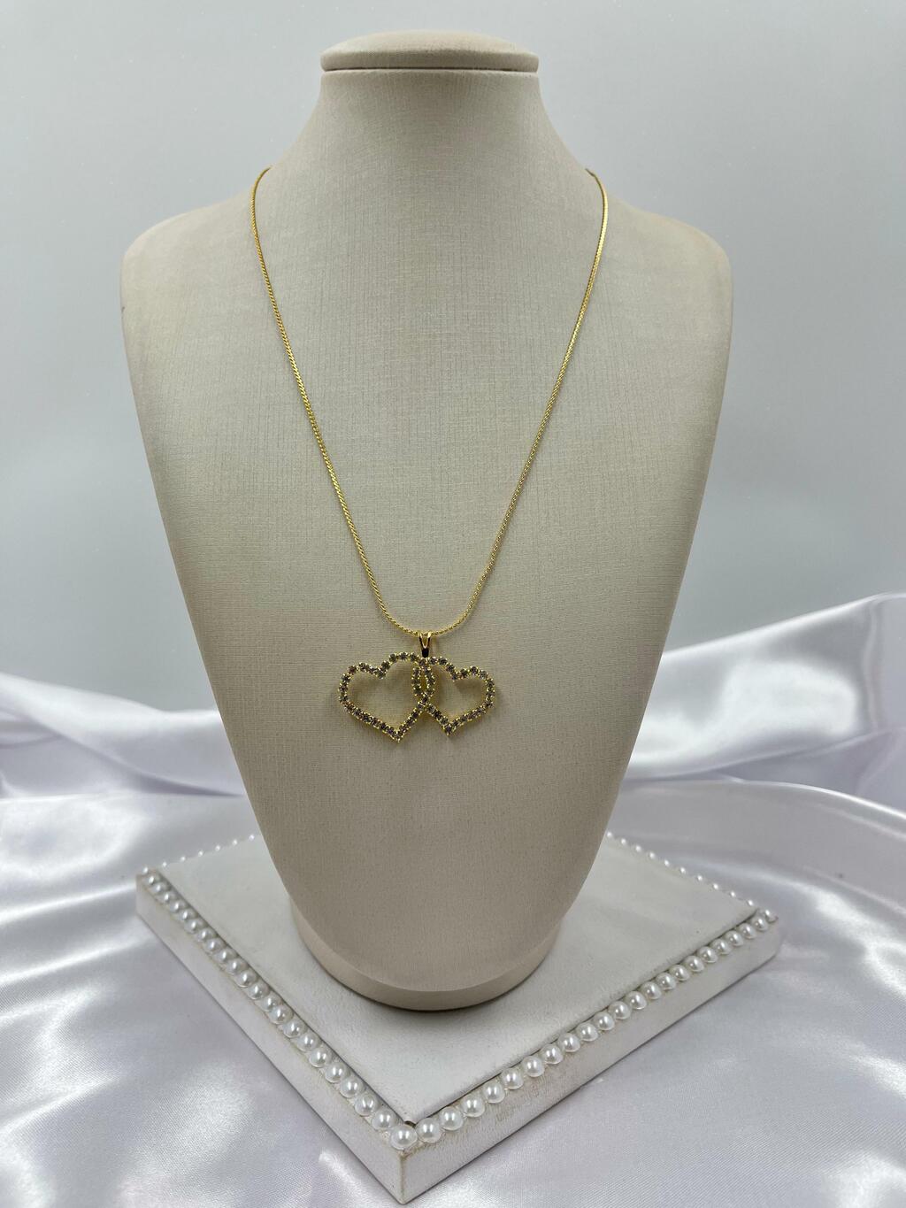 Descubra a beleza e a sofisticação do Colar com Pingente de dois corações com strass. Este colar é a escolha perfeita para quem busca um acessório que une simplicidade e elegância.